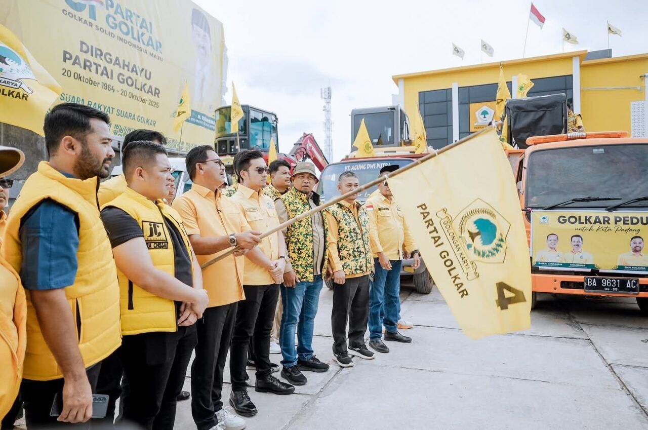 “Pagi tadi secara simbolis di Kantor DPD Partai Golkar Sumatera Barat, kami melepas Empat alat berat untuk membuka akses yang tertutup material, mobil air bersih dan ribuan paket sembako siap disalurkan,” ujar Ketua DPD Partai Golkar Sumbar, Khairunas.