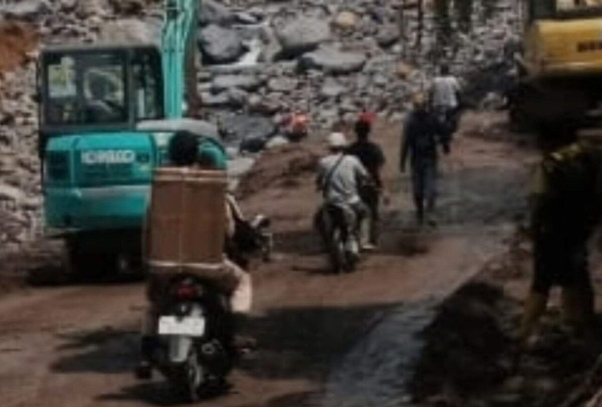 Ruas jalan berlubang, tanah yang masih labil, serta jalur sempit di tepi tebing menuntut kewaspadaan penuh. Beberapa anggota tim bahkan harus turun mendorong motor melewati permukaan tanah yang ambles demi memastikan perangkat tetap aman.