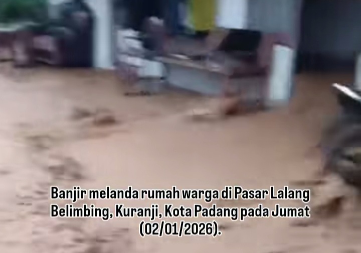 PADANG, KabaTerkini.com – Curah hujan tinggi sejak pagi, Jumat (02/01/26) membuat sejumlah lokasi di Kota Padang kembali dilanda banjir dan longsor.