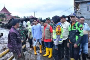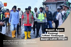 KABATERKINI.Com – Bupati Agam Dr H Andriwarman MM didampingi jajaran,l meninjau lokasi bencana banjir lahar dingin di Simpang Bukik Batabuah Kecamatan Canduang, Jumat (05/4). (Dok Agam Media Center)
