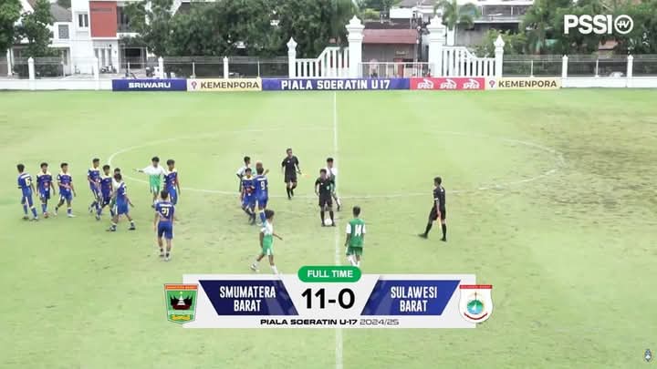 SOLO, KABATERKINI.Com – Persatuan Sepakbola Indonesia Kota Pariaman (Persikopa) mewakili Provinsi Sumatera barat tampil trengginas dengan menggilas Mandar United FC (Sulawesi Barat) 11 gol tanpa balas (11-0) di ajang Piala Soeratin U-17 Putaran Nasional, yang digelar di Lapangan Sepakbola Stadion Sriwaru Solo, Surakarta, Provinsi Jawa Tengah, Senin (09/12/24).