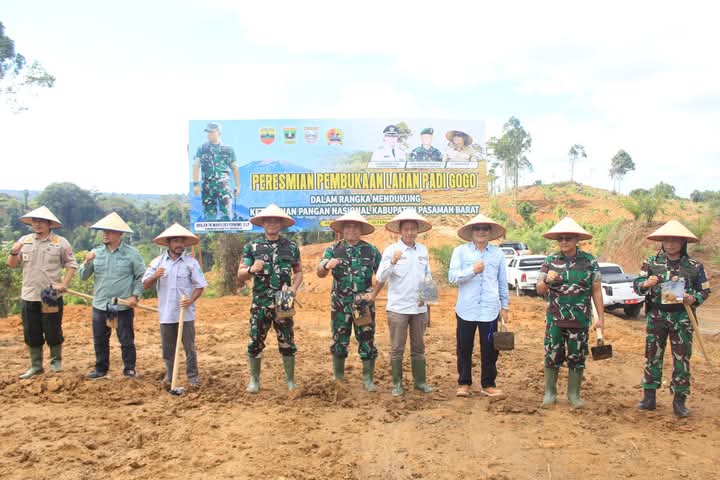 PASBAR, KABATERKINI.Com – Dalam rangka mendukung ketahanan pangan nasional, Danrem 032/Wirabraja Brigjen TNI Wahyu Eko Purnomo, S.I.P., didampingi Dandim 0305/Pasaman Letkol Arh Budi Prasetya, S.T., serta jajaran Pemerintah Kabupaten Pasaman Barat yang dikomandoi oleh Wakil Bupati Risnawanto, bersama tokoh masyarakat Najjar Lubis, secara resmi membuka lahan padi gogo di Aek Nabirong, Kecamatan Koto Balingka, Rabu (26/2).