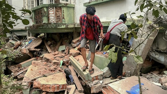 YANGON, KABATERKINI.Com – Pasca-gempa Jumat (28/03/25) siang, kondisi Myanmar memprihatinkan. Banyak bangunan ambruk, korban tewas dimana-mana.