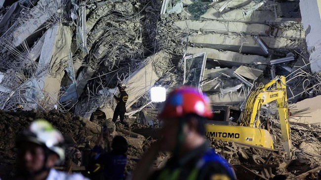 BANGKOK, KABATERKINI.Com – Lima hari pasca-gempa, tim evakuasi korban gempa mendeteksi tanda kehidupan di bawah renruntuhan gedung di Bangkok, Thailand.