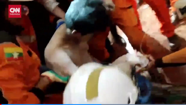 Rekaman yang dirilis departemen kebakaran Myanmar itu menunjukkan proses evakuasi korban dari hotel yang runtuh di Nay Pyi Taw.