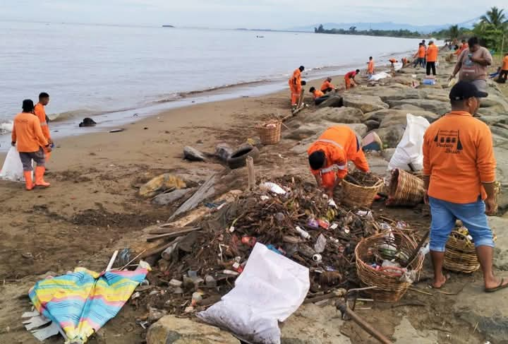 PADANG, KABATERKINI.Com – Beberapa hari terakhir, terlihat “Pasukan Oranye” berjibaku menangani sampah di Pantai Padang. Sampah dari laut terbawa ombak dan terdampar di daratan, membuat pemandangan pantai menjadi kotor dan tidak sedap dipandang.