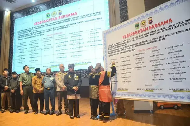 Salah satu momen penting dalam acara tersebut adalah penandatanganan Kesepakatan Bersama oleh Niniak Mamak se-Sumbar bersama jajaran Polda Sumbar.