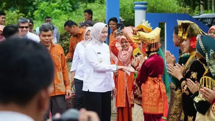 DHARMASRAYA, KABATERKINI.Com – Sorak sorai siswa menyambut kedatangan Bupati Dharmasraya, Annisa Suci Ramadhani, di Lapangan SMPN Unggul Dharmasraya (Spenggura), Rabu (23/04/25).