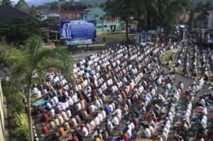 KABATERKINI.Com – Cuaca yang sejuk di pagi 1 Syawal 1445 Hijriyah, ribuan umat muslim padati halaman kantor Bupati Pasaman guna melaksanakan sholat ied idul Fitri, Rabu 10 April 2024.