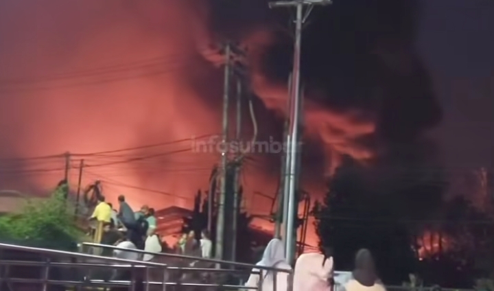 Api yang mulai terlihat sejak pukul 12.45 WIB siang hari ini belum berhasil dipadamkan hingga malam, meskipun berbagai upaya terus dilakukan oleh petugas gabungan.