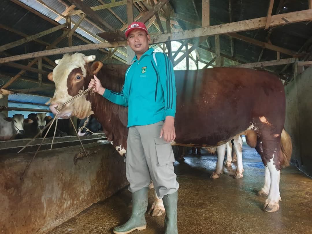 Sapi jenis Simmental dengan ciri warna coklat bercorak putih berbobot 1.080 kilogram milik Eko Setiawan, warga Kelurahan Koto Katik, menjadi salah satu kandidat hewan kurban dari Presiden.