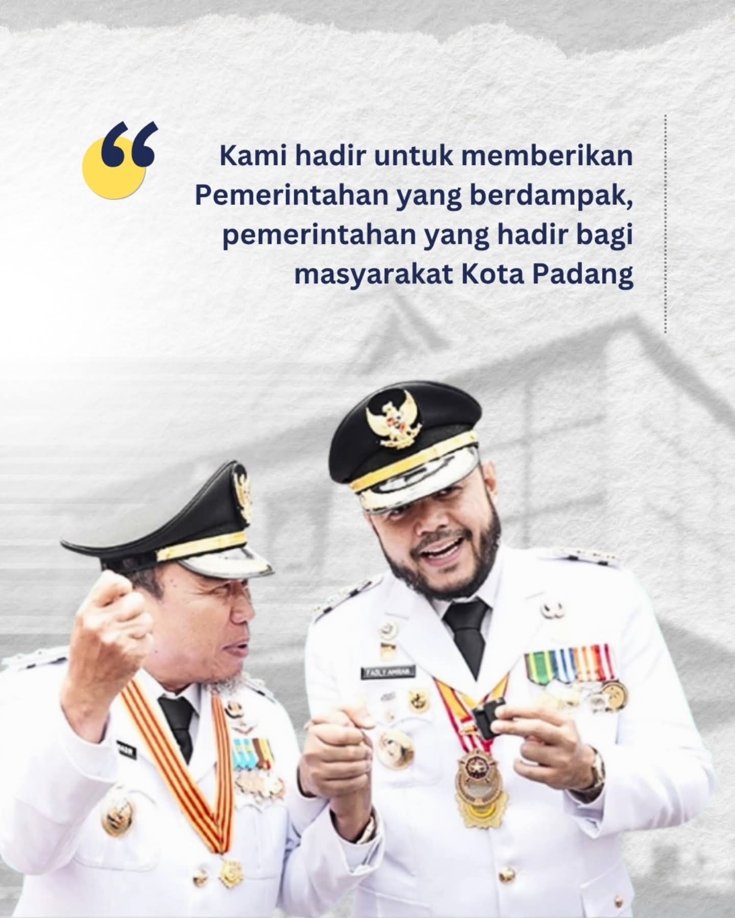 PADANG, KabaTerkini.com – Tepat tanggal 30 Mei 2025, 100 hari sudah pasangan Wali Kota Fadly Amran – Wakil Wali Kota Maigus Nasir bekerja memimpin untuk Kota Padang.