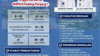 Pendaftaran dibuka selama dua hari pada hari ini, Senin (9/6/2025) hingga Selasa (10/6/2025) dengan pendaftaran langsung ke SMPN 6 yang berlokasi di Kelurahan Ngalau, Kecamatan Padang Panjang Timur.