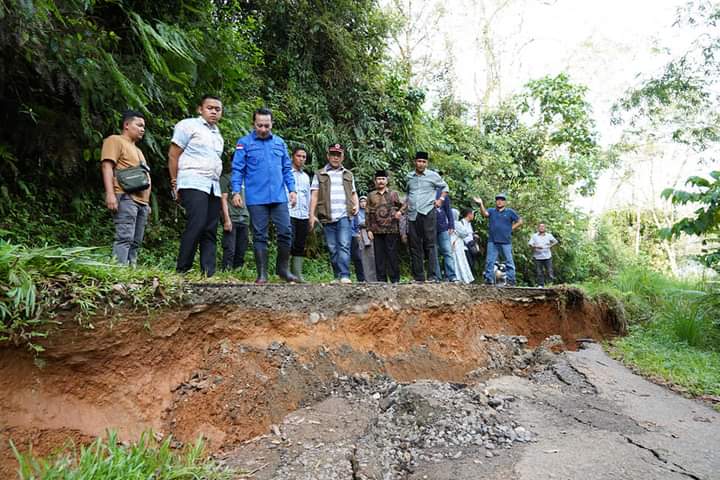 Mendapatkan informasi terkait terbannya badan jalan tersebut, Bupati Tanah Datar Eka Putra, SE, MM langsung meninjau lokasi, Kamis (11/04) di Jorong Galanggang Nagari Tapi Selo.
