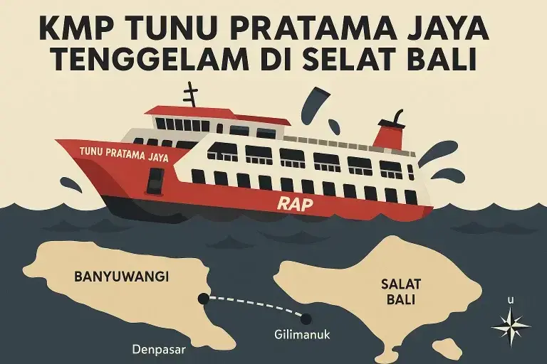 JEMBRANA, KabaTerkini.com – Kabar duka dari transportasi laut. KMP Tunu Pratama Jaya jurusan Banyuwangi-Jembrana tenggelam di Selat Bali, Kamis (03/07/25) dini hari.