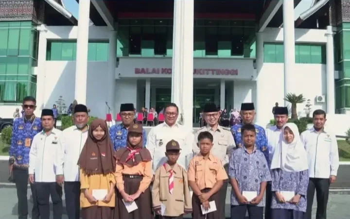 BUKITTINGGI, KabaTerkini.com — Pemerintah Kota Bukittinggi bersama Badan Amil Zakat Nasional (BAZNAS) setempat menyalurkan zakat pendidikan bagi pelajar tingkat SD, SMP, MI dan MTsN di daerah itu. Kegiatan ini dilaksanakan di halaman Balai Kota, Kamis, 17 Juli 2025.