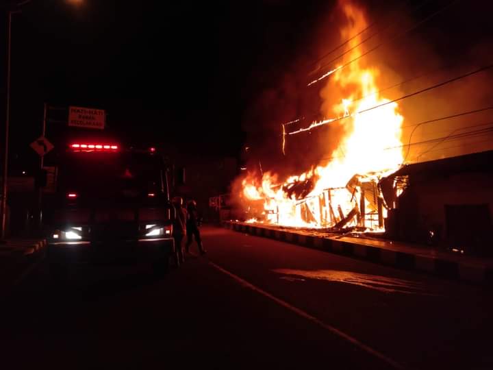 Kebakaran yang diperkirakan terjadi pada pukul 19.30 WIB itu menghabiskan dua petak kios diisi penjual gorengan, satu petak kios diisi konter HP, dua petak kios dalam keadaan kosong dan satu unit rumah semi permanen.