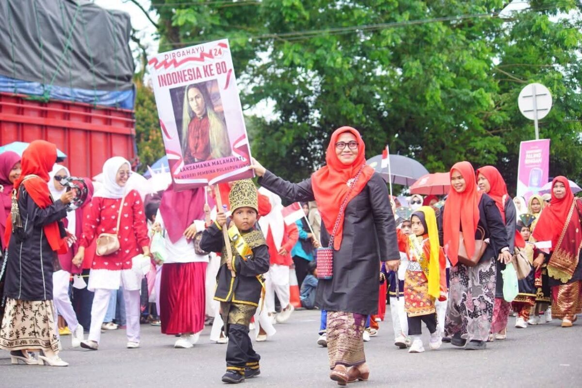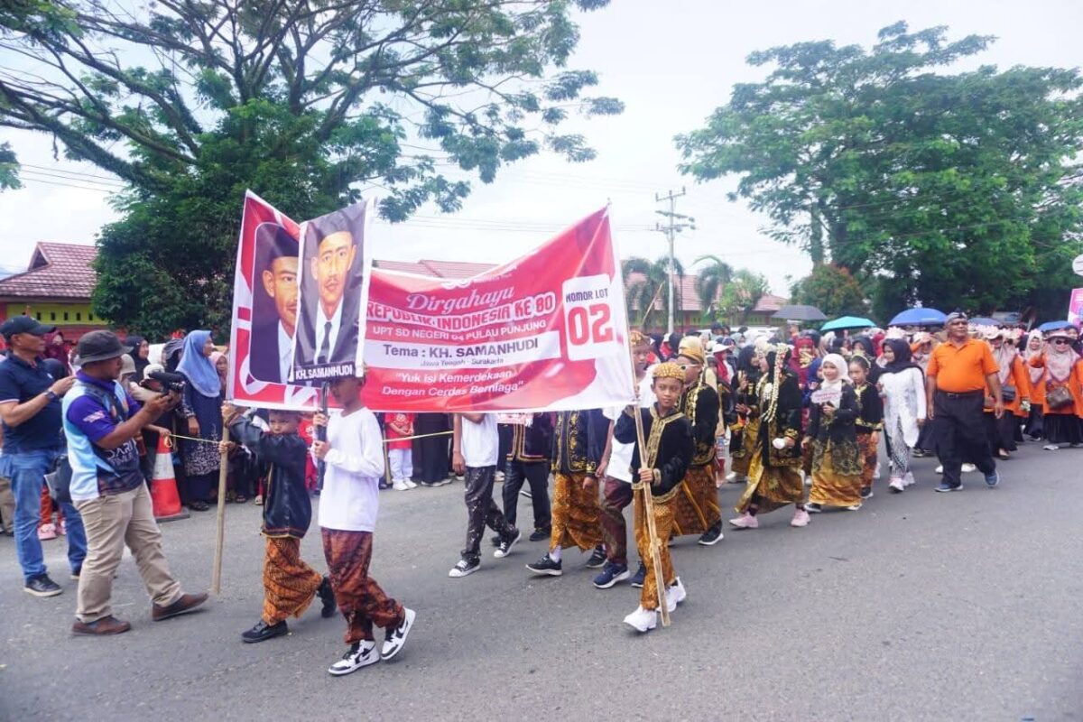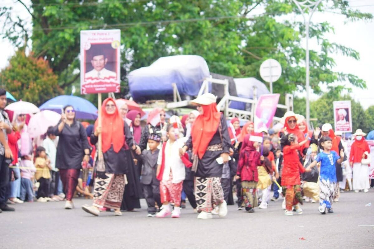 DHARMASRAYA, KabaTerkini.com – Momen keceriaan pawai alegoris dalam rangka HUT RI ke 80 di Kabupaten Dharmasraya, dengan tema “Pahlawan Ku, Pahlawan Kita Semua”.