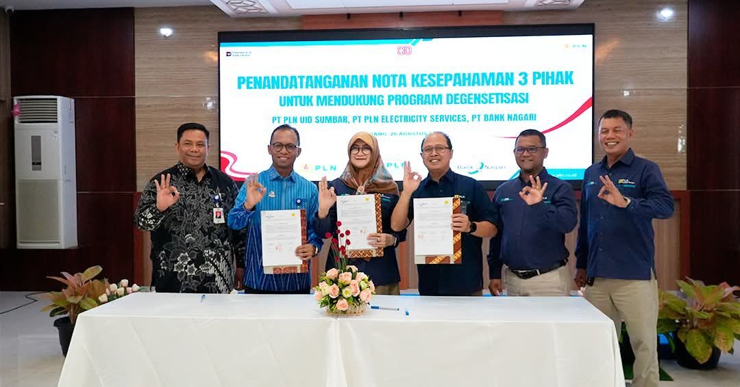 Adapun yang menandatangani nota kesepahaman adalah Direktur Keuangan Nagari Roni Edrian, General Manager PLN UID Sumbar Ajrun Karim, dan Direktur Utama PT PLN Electricity Services, Susiana Mutia.