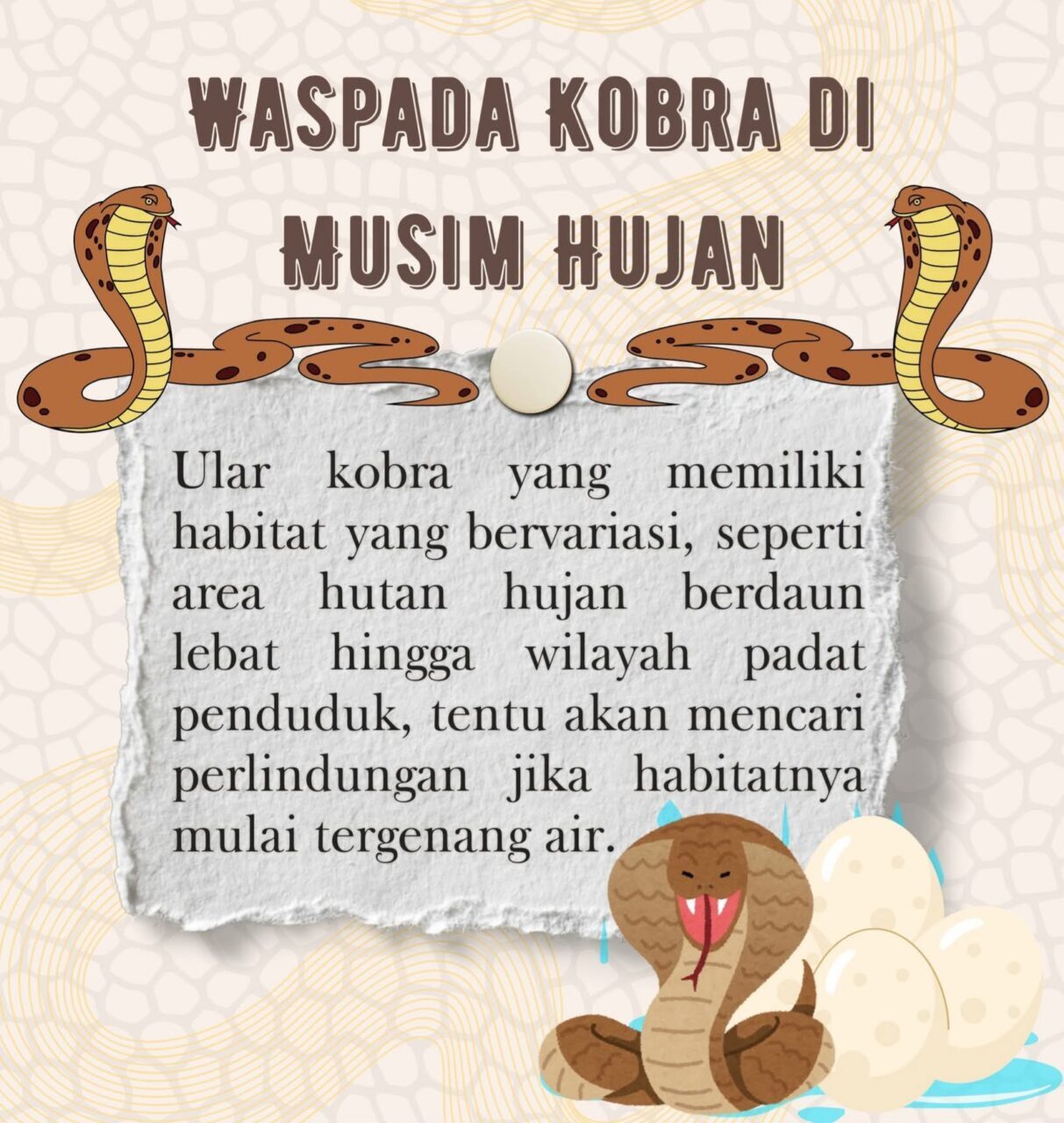 Simak infografis berikut untuk mengetahui cara menghindari kemunculan kobra di lingkungan kita.