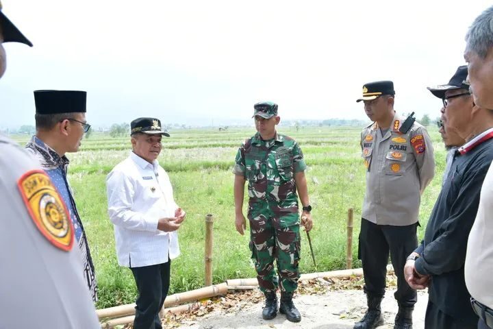 Bupati Agam, Ir. H. Benni Warlis, MM Dt Tan Batuah bersama Kapolresta Bukittinggi, Kombes Pol Ruly Indra Wijayanto, S.I.K, M.Si, dan Dandim 0304/Agam, Letkol Inf Slamet Dwi Santoso, S.I.P., meninjau langsung lahan pertanian di Nagari Biaro Gadang, kecamatan tersebut.