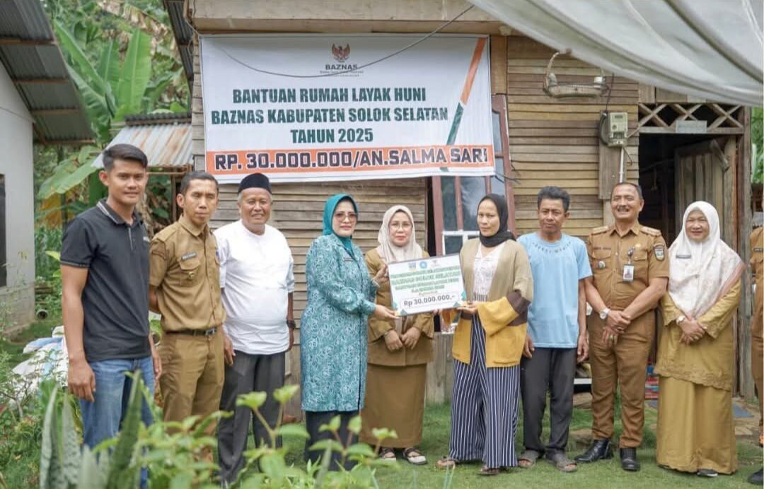 Penyerahan bantuan bedah rumah ini diberikan kepada penerima Salma Sari, merupakan kolaborasi pemerintah, BAZNas Solok Selatan bersama TP PKK dalam upaya meningkatkan taraf hidup masyarakat.