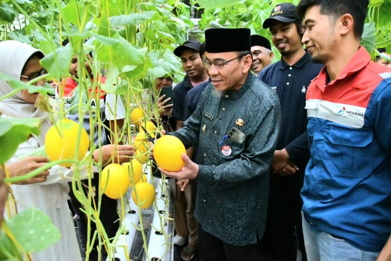 PADANG, KabaTerkini.com – Wakil Wali Kota Padang, Maigus Nasir menghadiri panen perdana 1.000 buah Melon Golden Premium Hidroponik yang digelar Kelompok Tani Muda, di Kelurahan Teluk Kabung Tengah, Kecamatan Bungus Teluk Kabung (Bungtekab), Jumat (03/10/25).