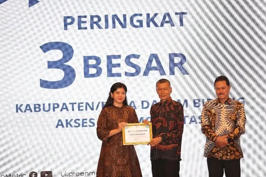 PARIAMAN, KabaTerkini.com – Pemerintah Kota Pariaman kembali menerima penghargaan UI GreenCity Matric Awards 2025. Kota Pariaman mendapatkan peringkat ke sebelas (11) sebagai Kabupaten/Kota Paling Berkelanjutan Tahun 2025 dan mendapatkan peringkat ketiga (3) untuk Bidang Akses dan Mobilitas.