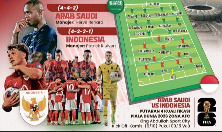 Timnas Indonesia akan menjalani laga krusial melawan Arab Saudi dalam pertandingan pertama Grup B babak keempat Kualifikasi Piala Dunia 2026 zona Asia.