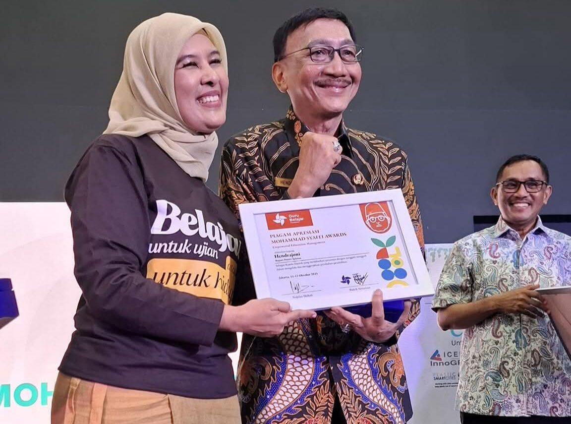 Penghargaan ini diberikan sebagai bentuk apresiasi atas dedikasi, kontribusi, dan dukungan Bupati dalam meningkatkan kualitas pendidikan di daerah, terutama melalui program peningkatan kapasitas guru dan penguatan ekosistem pendidikan yang berkelanjutan di Kabupaten Pesisir Selatan.