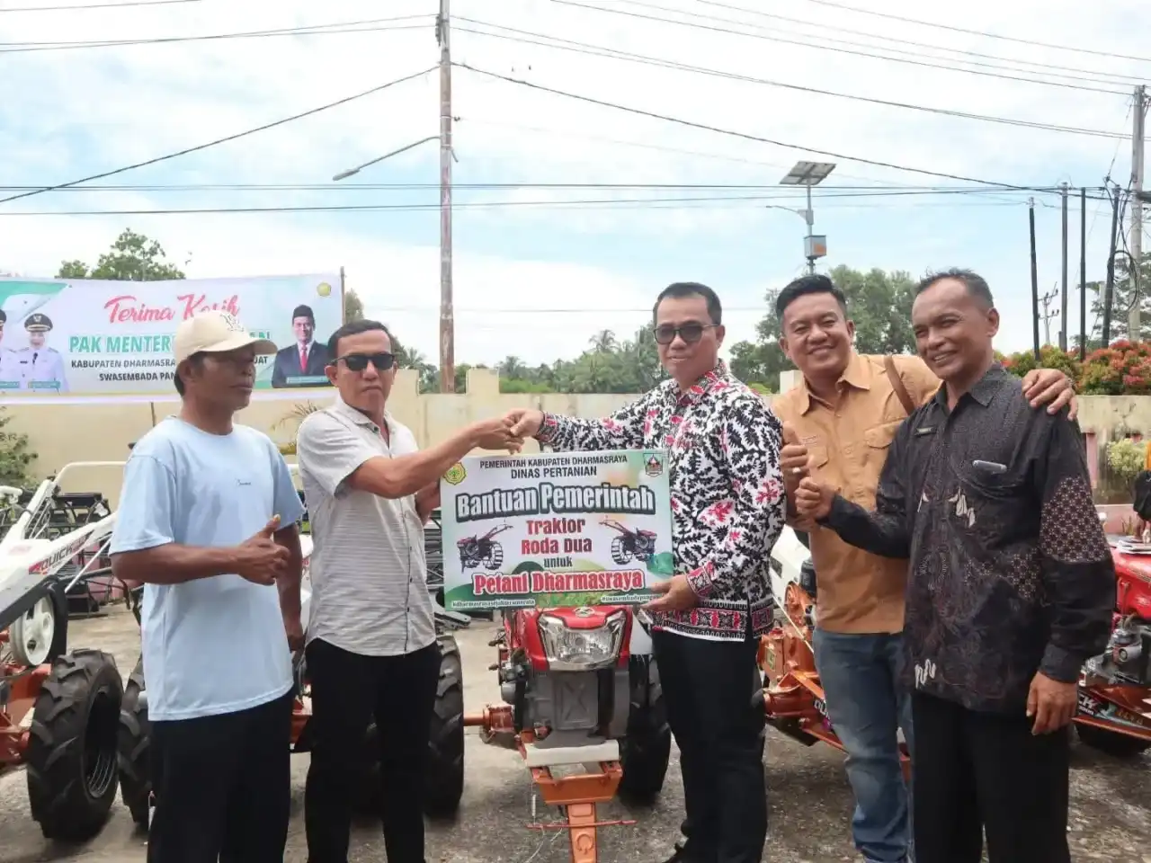 DHARMASRAYA, KabaTerkini.com – Pemerintah Kabupaten Dharmasraya melalui Dinas Pertanian menyalurkan sepuluh unit traktor roda dua kepada kelompok tani dari berbagai nagari di daerah itu.