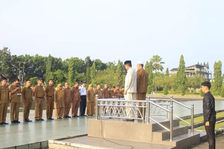 Apel Gabungan Perdana Pasca Idul Fitri, Bupati Hamsuardi Bersama Wabup Risnawanto Berikan Reward Khatam Alquran.