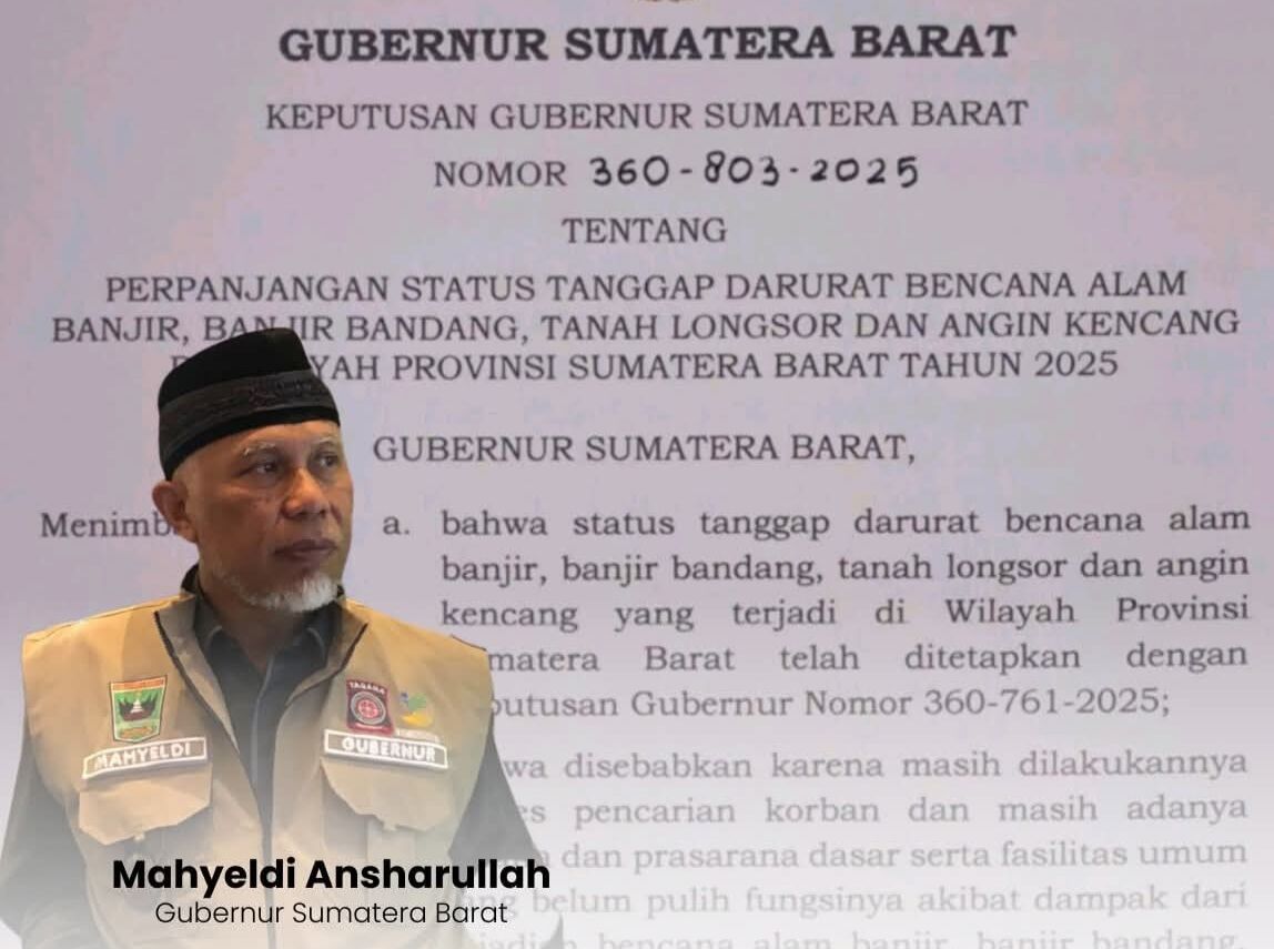 PADANG, KabaTerkini.com – Pemerintah Provinsi Sumatera Barar resmi memperpanjang status tanggap darurat selama 14 hari, hingga 22 Desember 2025.