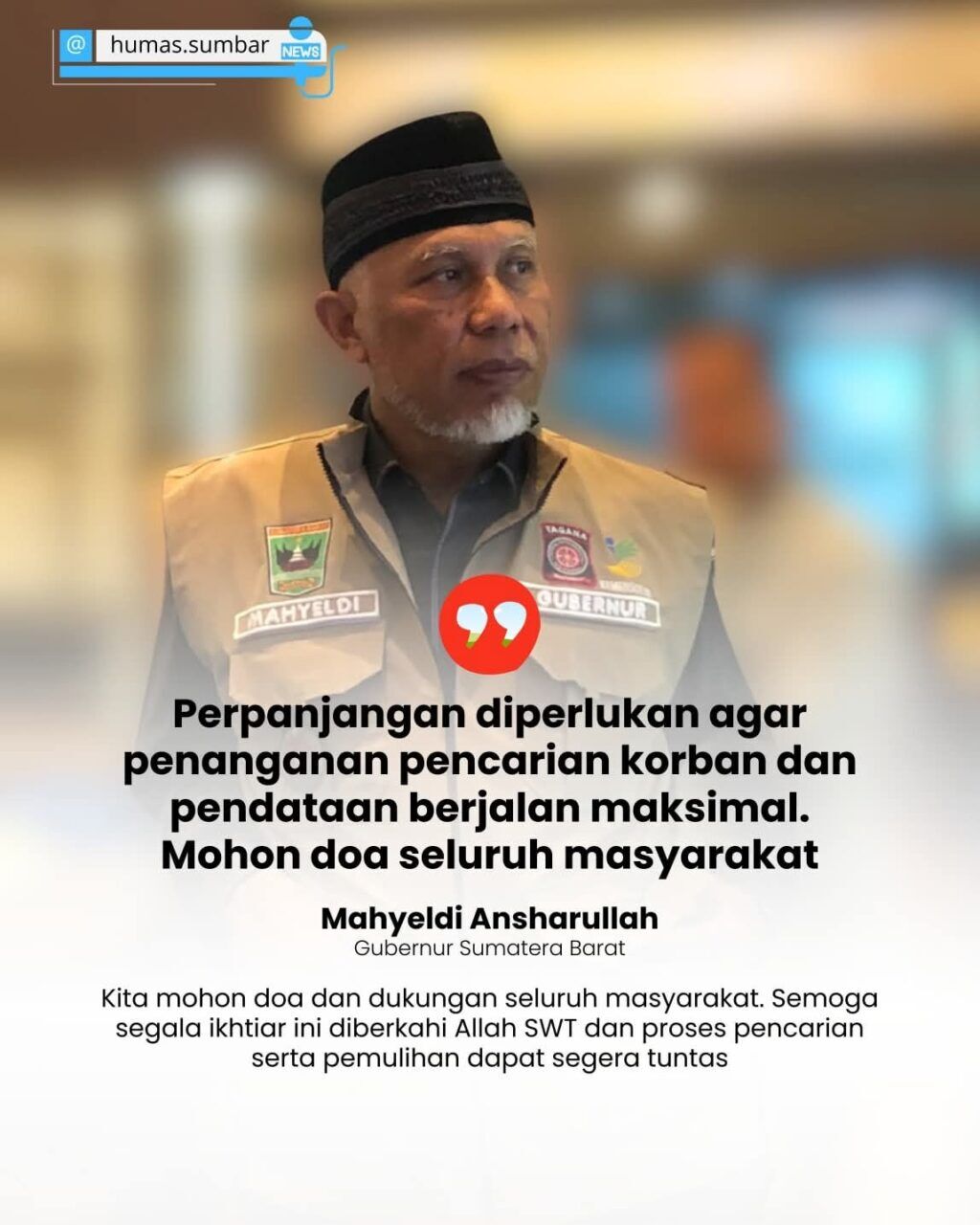 Beranda Breaking News Pemprov Sumbar Perpanjang Masa Tanggap Darurat Banjir Bandang Hingga 22 Desember 2025 Breaking News Pemprov Sumbar Perpanjang Masa Tanggap Darurat Banjir Bandang Hingga 22 Desember 2025KABATerkini.com - Banjir SumbarSelasa, 09/12/2025 | 09:55 WIB (*/001) Sebelumnya Baca Juga Afghanistan Porak-Poranda Diguncang Gempa M 6,3, Ratusan Orang Diperkirakan TewasLaman: 1 2 Baca Juga4 Jembatan Bailey yang Dibangun Kodam XX/TIB Padang di Lokasi BencanaPemko Padang Catat Kerugian Infrastruktur Akibat Banjir Bandang Capai Rp264,3 MPemko Padang Kerahkan ASN Bersihkan Lumpur Bekas Banjir di SMAN 12 Gurun LawehPemkab Dharmasraya Dirikan Posko Peduli Bencana di PadangPENGUMUMAN: Jadwal Penutupan Jalan Palembayan Karena Ada Pekerjaan Pembersihan LongsorPrabowo Minta Mendagri Segera Proses Bupati Aceh Selatan yang Umrah Tanpa Izin saat Bencana