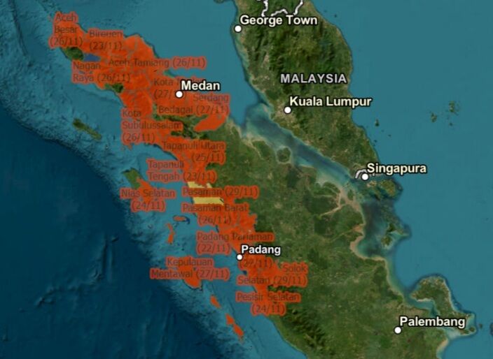 PADANG, KabaTerkini.com – Hujan lebat yang mengguyur daerah Sumatera Barat sejak malam tadi, Selasa (09/12/25) hingga hari ini Rabu (10/12/25) membuat sejumlah daerah rawan banjir dan longsor.