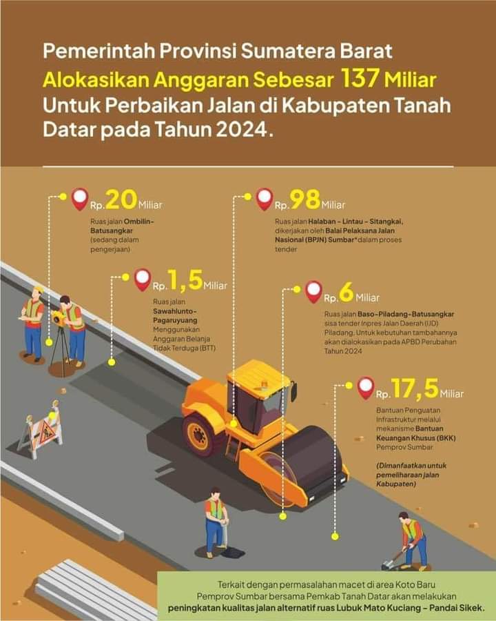 KABATERKINI.Com – Pemerintah Kabupaten Tanah Datar bersama provinsi segera mempercepat perbaikan jalan yang rusak di daerah tersebut.