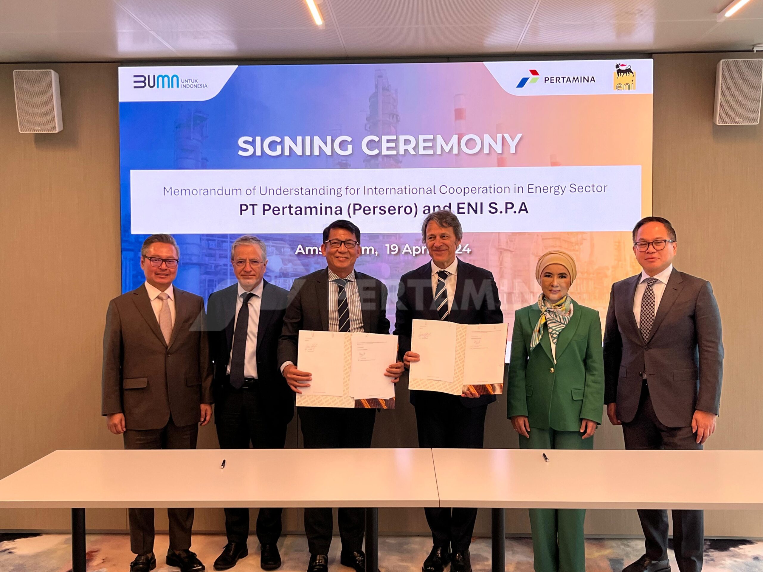 Penandatanganan MOU tersebut dilakukan oleh Direktur Strategi, Portofolio, dan Pengembangan Usaha PT Pertamina (Persero) Salyadi Dariah Saputra dan Direktur Upstream ENI S.p.A Luca Vignati di Amsterdam. Turut menyaksikan penandatanganan MoU tersebut Wakil Menteri BUMN Kartika Wirjoatmojo, Direktur Utama PT Pertamina (Persero) Nicke Widyawati, dan Direktur Utama PT Pertamina Internasional EP Jafee Arizon Suardin.