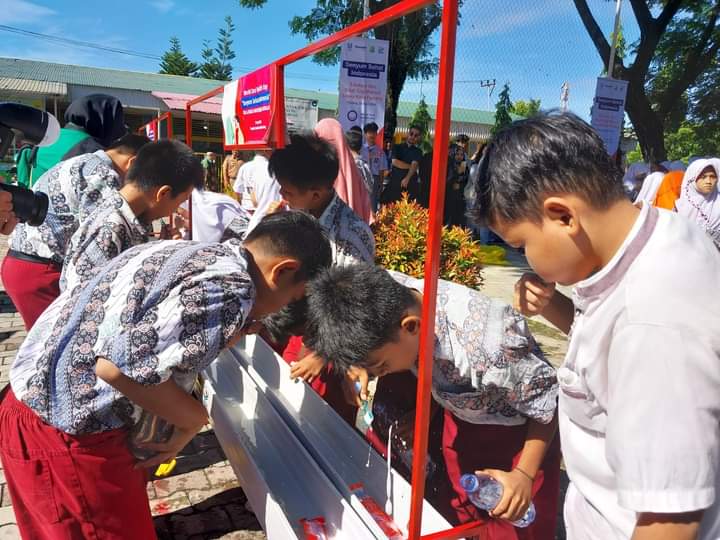 KABATERKINI.Com – Tampak antusias siswa/siswi mengkampanyekan kesadaran akan menjaga kesehatan gigi dan mulut. Mereka mempraktikan cara menggosok gigi di kompleks kawasan Adabiah, Selasa (23/4/2024).