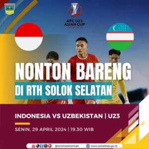 Sebagai bentuk dukungan terhadap Timnas Indonesia yang akan bertanding melawan Uzbekistan di ajang Semifinal AFC ASIAN CUP U-23 di Qatar 2024, Pemerintah Daerah Kabupaten Kepulauan Mentawai menggelar Nonton Bareng mulai pukul 20.00 wib nanti malam, Senin (29/04/24).