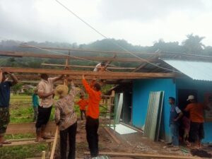 Paginya setelah sarapan, rombongan menuju ke lokasi yang terdampak banjir. Dalam pengerjaan Huntara tersebut tepatnya sesudah zuhur, Wali Nagari Gantiang Mudiak Surantiah Zulhadi hadir ke lokasi kegiatan.