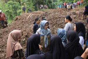 Pj Walikota bersama tim langsung menurunkan alat berat untuk pemulihan material longsor sekaligus menyalurkan bantuan. (*/002)