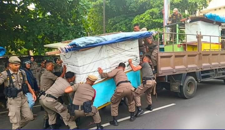 Selasa (07/05/24), Satpol PP Padang melakukan penertiban terhadap PKL yang sengaja meninggalkan Gerobak dagangannya di atas trotoar Jalan Samudra dan Jalan Diponegoro Kecamatan Padang Barat.