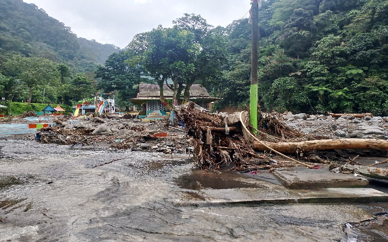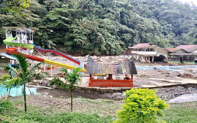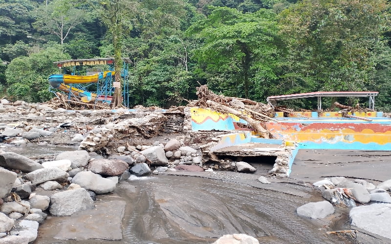 KABATERKINI.Com – Selain Cafe XAKAPA yang diseret habis oleh Galodo yang terjadi Sabtu malam hingga Minggu dini hari (11-12/05/24), air bah juga menyapu kolam-kolam renang dan bangunan objek wisata Mega Mendung.
