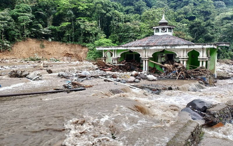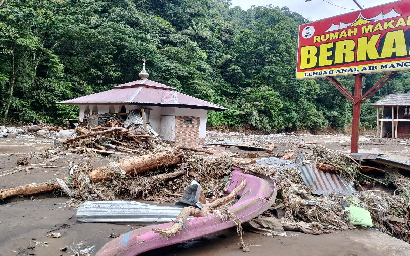 Tiga Mushallah di sepanjang Objek wisata pemandian Mega Mendung Lembah Anai masih berdiri kokoh meskipun dikelilingi air bah Galodo, Sabtu (11/05/24) malam.