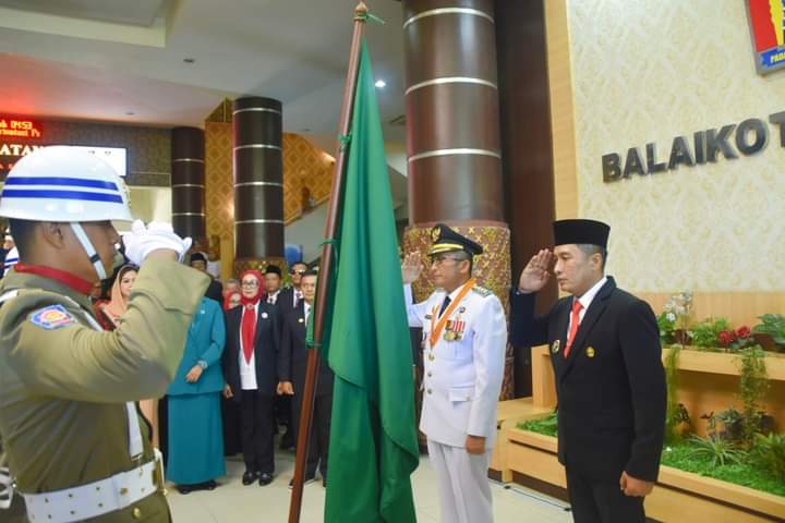 KABATERKINI.Com – Suasana haru mewarnai lepas masa tugas Wali Kota Padang Hendri Septa dan Wakil Wali Kota Padang Ekos Albar di Balai Kota Padang, Aia Pacah, Senin (13/5/2024).