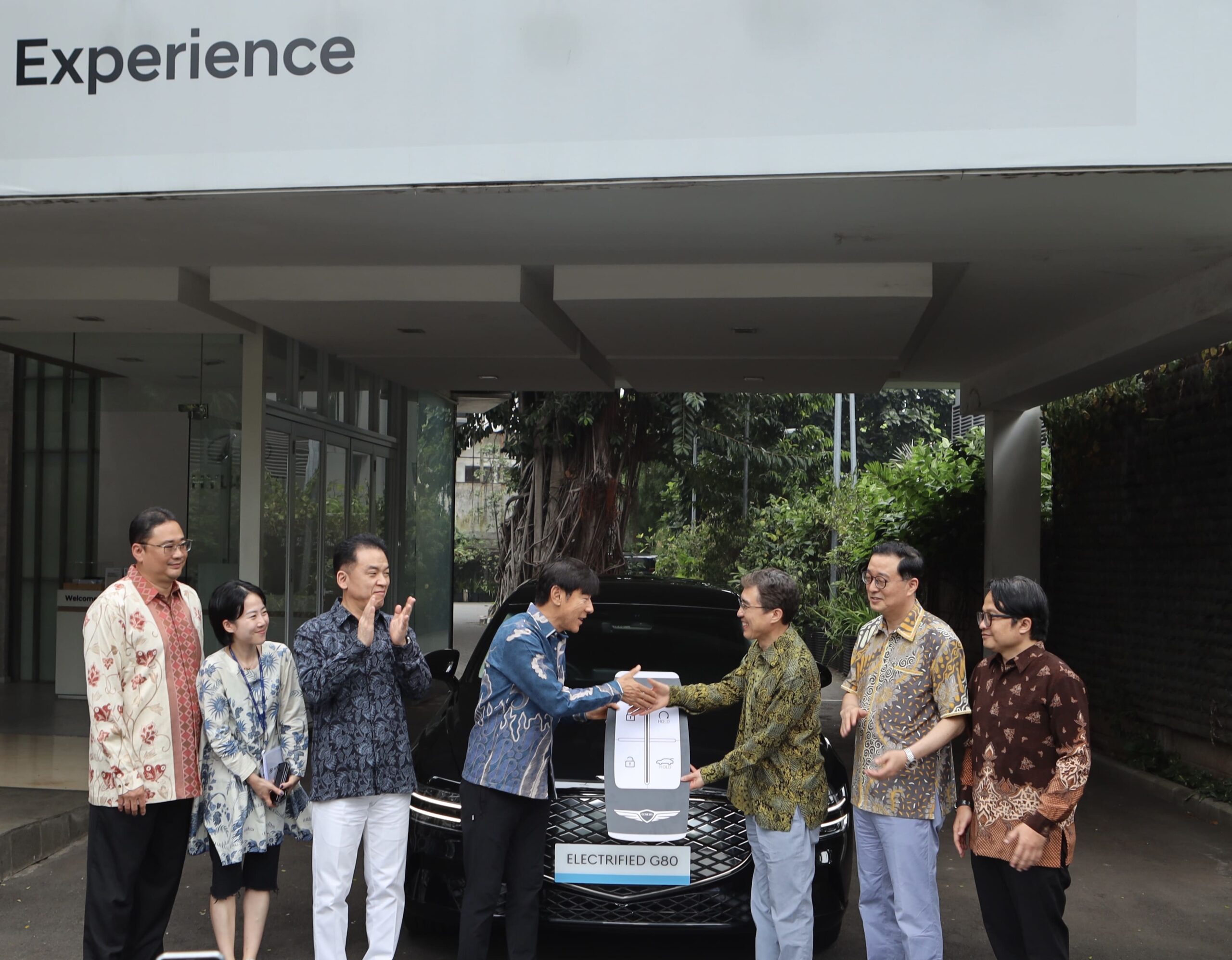 Seong Nam Kim, President Hyundai Motor Asia Pacific HQ, Kanghyun Lee, Advisor to Hyundai Motor Asia Pacific HQ; Woojune Cha, President Director PT Hyundai Motors Indonesia, dan Fransiscus Soerjopranoto, Chief Operating Officer PT Hyundai Motors Indonesia hadir langsung melakukan serah terima kendaraan kepada Shin