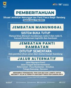 - TUTUP: Kota Padang via Lembah Anai (Putus Total) – Padang Panjang – Batusangkar.