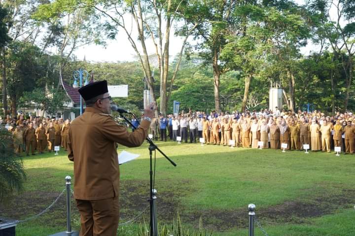 Hal ini disampaikan Bupati saat memimpin apel pagi bersama, Senin (10/6/2024) di halaman kantor Bupati di Pagaruyung, Kecamatan Tanjung Emas.
