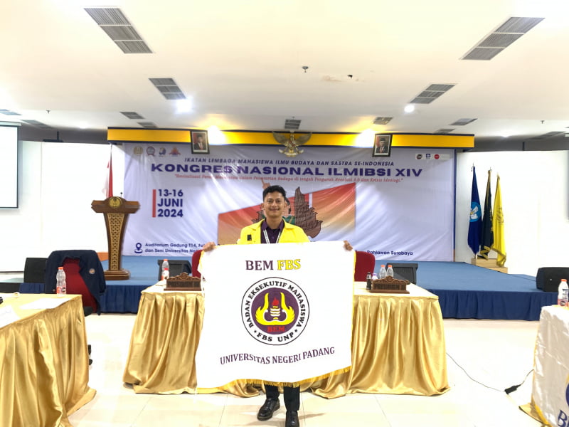 KABATERKINI.Com – Dedek Wiradi selaku Gubernur Mahasiwa Badan Eksekutif Mahasiswa (BEM) Fakultas Bahasa dan Seni (FBS) Universitas Negeri Padang (UNP) terpilih sebagai Koordinator Pusat (Korpus) pada Kongres Nasional Ikatan Lembaga Mahasiswa Ilmu Budaya dan Sastra se-Indonesia (ILMIBSI) periode 2024-2025 di Surabaya (15/06/24).