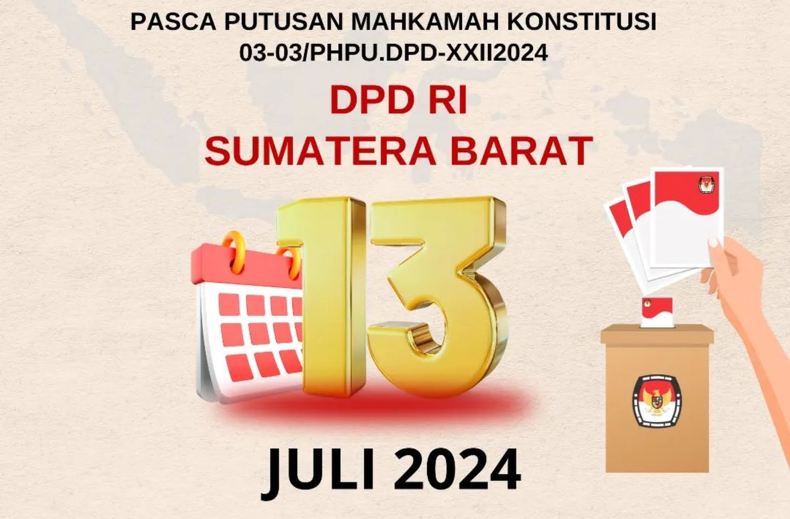 KABATERKINI.Com – Komisi Pemilihan Umum (KPU) akan menyelenggarakan Pemungutan Suara Ulang (PSU) calon Anggota DPD RI tanggal 13 Juli 2024. PSU dilaksanakan menyusul dikabulkanya tututan Calon Anggota DPD Irman Gusman oleh Makamah Konstitusi.
